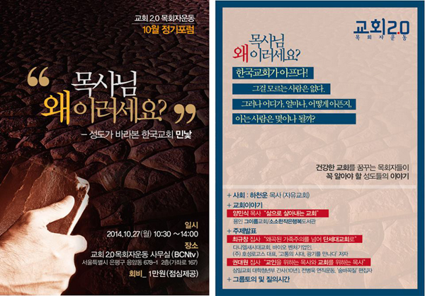포럼 장소는 교회2.0목회자운동 사무실이고, 오전 10시 30분부터 2시까지 진행된다. 점심이 제공된다. 회비 1만 원이다.