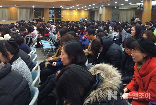 [뉴스앤조이-이은혜 기자] 온누리교회 이기원 목사의 기도 인도에 젊은이들이 통성기도를 시작했다. 1월 마지막 토요일 저녁 7시 추운 날씨에도 서빙고 본당 3, 4층 3분의 2가 가득 찼다. 간혹 청소년이 보이는가 하면 엄마와 함께 온 초등학생도 있었다. 이들은 '나는 더 이상 게이가 아닙니다' 시사회에 참석하기 위해 왔다.