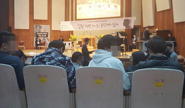 이날 행사에 성 소수자들은 참석할 수 없었다. 주최 측은 강당 한쪽에 "동성애 옹호자들 전용석, 동성애 옹호하시는 분들만 앉아 주시기 바랍니다"라는 안내문을 붙였다가 이내 철거했다.