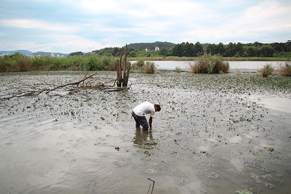 "그때는 진짜 엄청 큰 것도 나왔어요. 축구공만 한 것도 널렸고 제일 큰 건 3.5m 정도 됐으니까. 올해 여름에는 싹 없어졌어요. 큰빗이끼벌레는 2~3급수에서 발견돼요. 지금은 그 대신 4급수에서 사는 붉은깔따구, 실지렁이가 발견되죠."