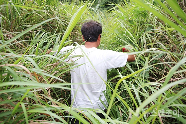 4대강 사업 때 만들어 놓은 산책로를 따라갔는데, 그곳은 이미 길이 아니었다. 풀이 사람 키만큼 자라 어디가 어딘지 가늠할 수 없었다. 김종술 기자는 그런 길을 삽 한 자루 들고 잘도 헤치고 앞서 갔다.