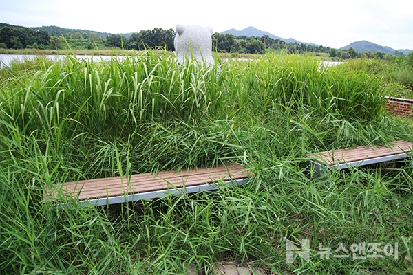 ▲ 공주보 인근에는 4대강 사업으로 공원이 많이 조성됐다. 그러나 전혀 관리가 되지 않고 있다. 사진 아래는 수풀이 아니라 '산책로'다. ⓒ뉴스앤조이 구권효