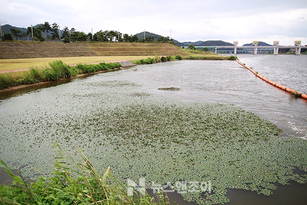 ▲ 금강에는 연못에서 자라는 '마름'도 많이 보였다. 유속이 느려져 물이 정체돼 있다는 증거다. ⓒ뉴스앤조이 구권효