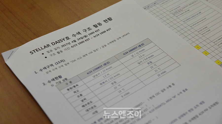 [뉴스앤조이-유영] 스텔라데이지호 실종자 가족이 한탄했다. 정부가 스텔라데이지호 수색에 국가 역량조차 제대로 활용하지 않은 사실이 드러난 까닭이다. 스텔라데이지호 수색 지역을 2시간마다 고해상도 광학 촬영할 수 있는 위성 아리랑 3호를 정부는 수색에 사용하지 않았다. 종합대책상황반이 꾸려졌지만, 수색을 위한 협업은 없었다.
