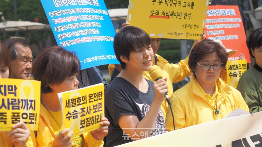 4·16가족협의회 심리생계지원 분과 홍영미 분과장(재욱 엄마)은 세월호 참사 당시부터 지금까지 변하지 않은 정부 태도를 비판했다. 그는 "세월호 가족은 9명 미수습자 유해와 304명 희생자 유품 수습, 유가족이 참여한 제대로 된 세월호 선체 조사를 요구했다. 하지만 정부는 여전히 이를 막고 있으며 유가족과 국민에게 조사 과정과 관련한 진실을 감추고 있다"고 말했다.