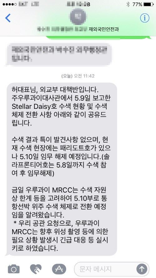 "외교부, 수색 종료 상황 문자로 통보 |