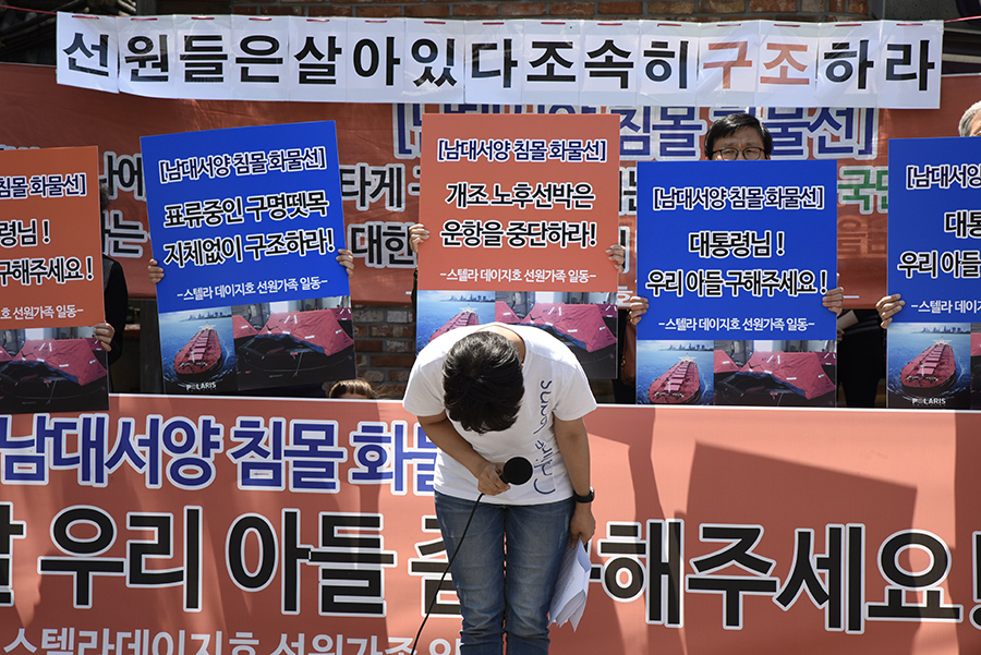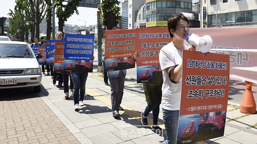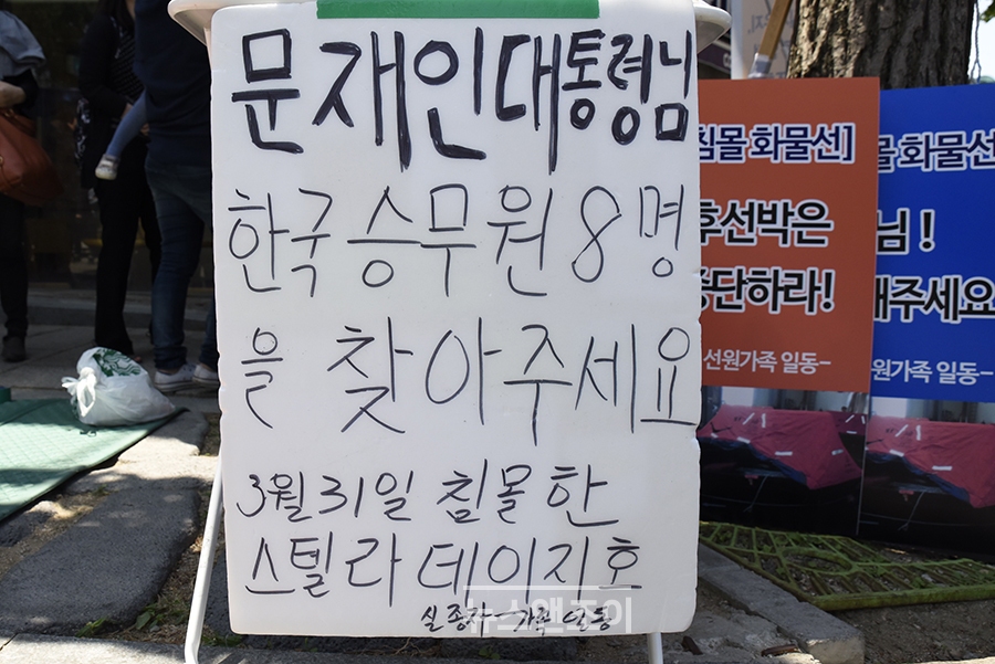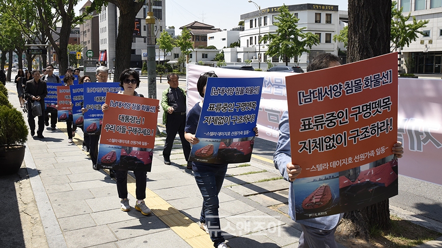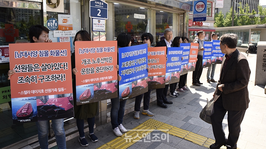 [뉴스앤조이-현선 기자] 실종 48일째. 스텔라데이지호 실종자 가족들은 5월 17일 경복궁역 3번 출구에서 청운효자동주민센터 앞 청와대 길목까지 행진하며, 실종자 수색과 국민의 관심을 호소했다. 행진 후 청와대 내 컨트롤타워 즉각 설치, 조속한 수색 재개 요구 및 개조 노후 선박의 운항 금지를 촉구하는 기자회견을 열었다.