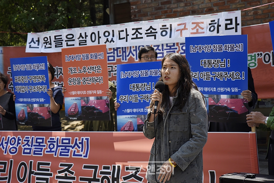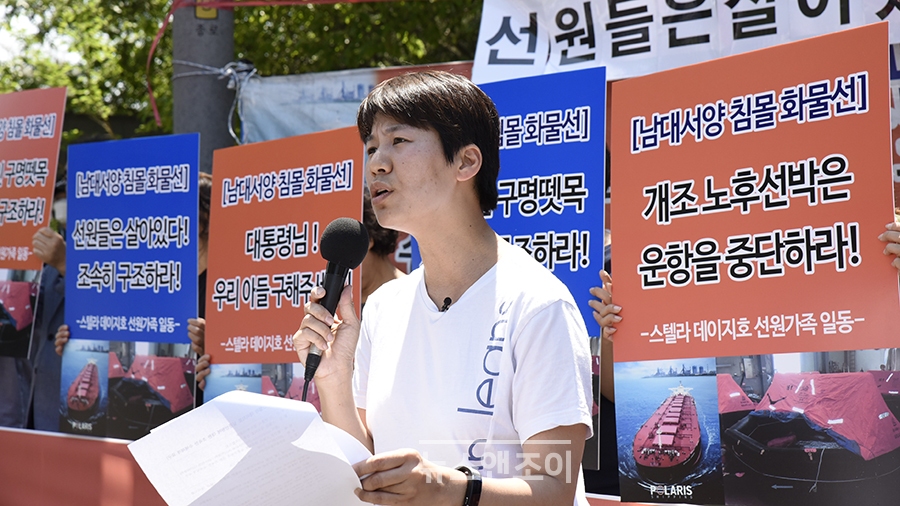 기자회견에는 4.16연대가 함께했다. 안순화 4.16연대 공동대표는 "세월호 유가족들이 노숙 생활했던 게 생각난다. 새 정부가 약속했듯이 이분들의 가슴 아픔을 잘 헤아려 주시고 구조와 수색 작업에 최선을 다해 달라. 세월호와 스텔라데이지호는 다를 것이 없다. 초기 구조 대응 과정에 문제가 많아 선원들의 생사 여부를 알 수 없다. 새 정부는 이윤보다 생명이 우선인, 제대로 된 구조와 안전 시스템을 만들어 달라. 문 대통령은 가족들의 애끓는 외침을 외면하지 마시고 선원들이 가족 품에 잘 돌아올 수 있도록 도와주시기를 부탁한다"고 말했다.
