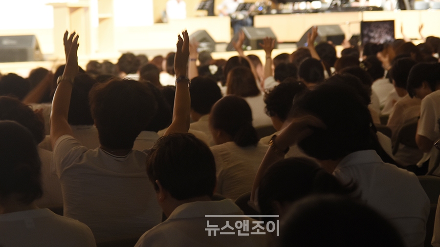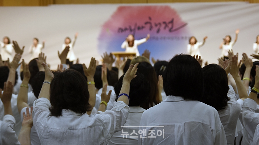 온누리교회가 10여 년 전부터 나라와 민족을 위한 여성 기도 부흥 운동을 위해 진행해 온 '마리아 행전' 마지막 시간이었다. 본당에는 드레스 코드(흰색 상의에 검은색 하의)를 맞춰 입은 여성 1,000여 명이 모였다. 20대 청년부터 백발이 성성한 노인까지 한자리에 있었다.