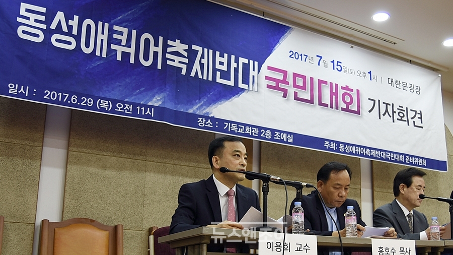'동성애퀴어축제반대국민대회준비위원회'(준비위)는 6월 29일, 서울 종로 기독교회관에서 국민대회를 소개하는 기자회견을 열었다. 김선규 대회장(예장합동 총회장), 이용희 대표(에스더기도운동), 이병대 목사(바른인권연구소), 홍호수 목사(한국교회동성애대책협의회 사무총장)가 발표자로 나섰다.