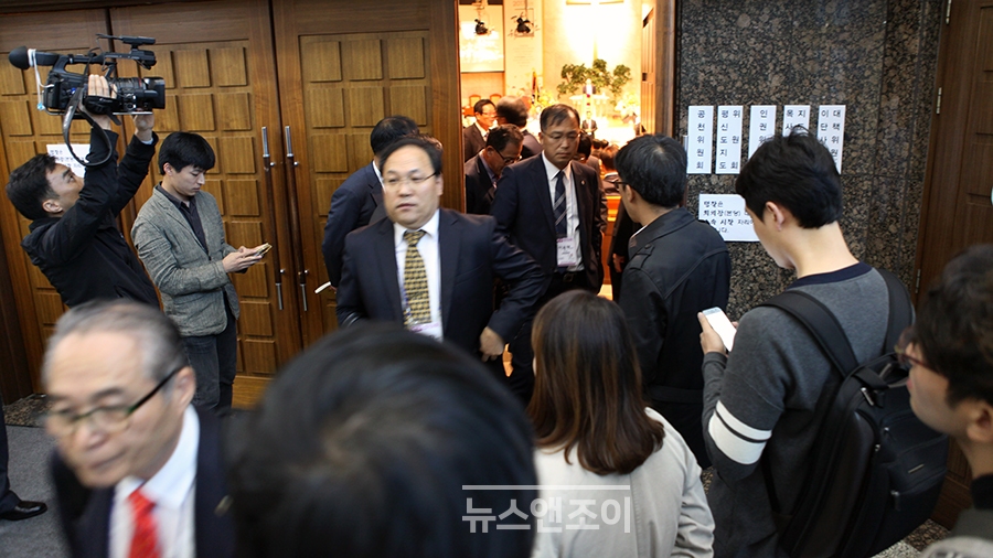 이에 노회원들이 들고일어났다. "언제 그런 합의를 했느냐", "왜 마음대로 회의를 진행하느냐", "불법이다"라며 노회장에게 항의했다. 노회장은 아랑곳하지 않았다. 김수원 목사를 비롯한 노회원 130여 명은 분개하며 회의장을 빠져나왔다.