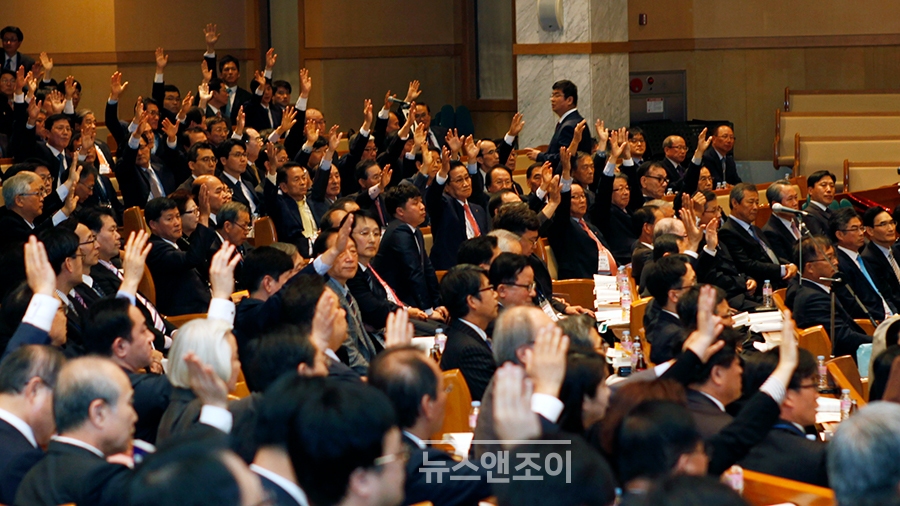김수원 목사 / "김하나 목사 청빙안은 교단 헌법 28조 6항(세습금지법)에 위배되는 건이다. 법에는 은퇴하는 목사의 직계비속은 해당 교회가 청빙할 수 없도록 나와 있다. 헌법이 정비된 후 진행하는 게 가하다."
