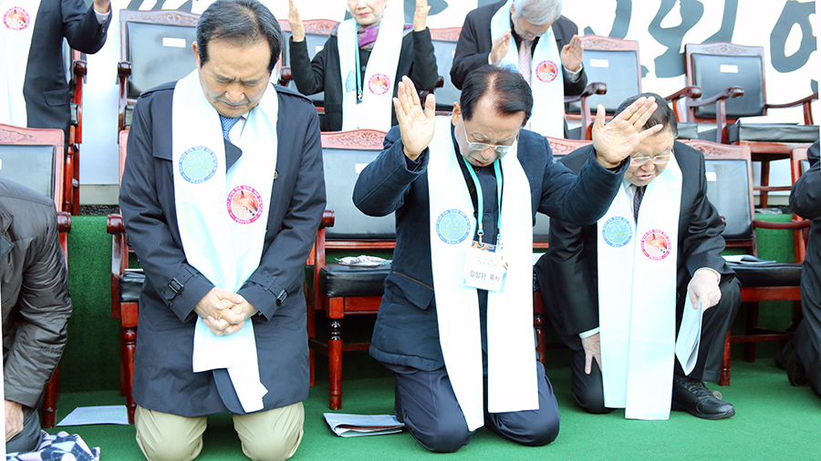 참석자들은 소 목사의 기도 인도에 따라 무릎을 꿇거나 두 손을 들고 기도했다. 김장환 목사, 정세균 국회의장, 김삼환 목사 등도 무릎을 꿇고 두 손을 든 채로 기도했다. 참석자들은 핵과 전쟁의 위협에서 민족을 건져 달라고 기도했다. 한국교회의 연합과 일치, 평화통일, 평창 동계올림픽의 성공적 개최를 위한 기도가 이어졌다.