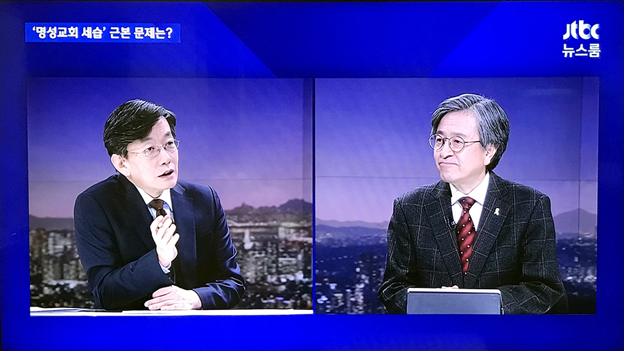 [뉴스앤조이-구권효 기자] 교회개혁실천연대 공동대표 박득훈 목사가 11월 13일 JTBC 뉴스룸에 출연해 명성교회 부자 세습을 비판했다.