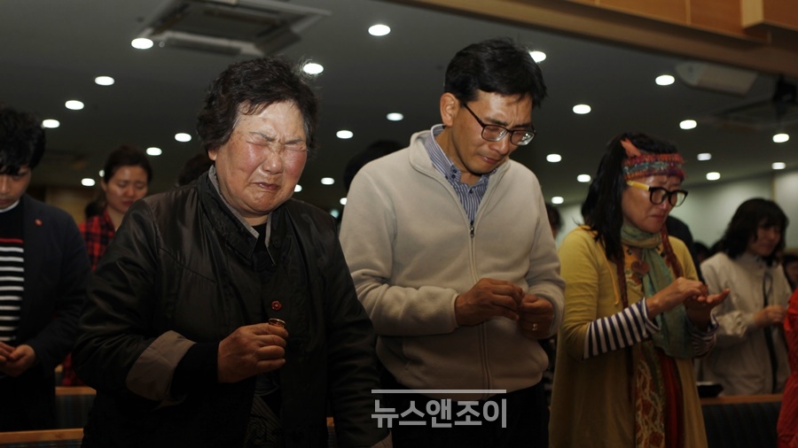 이날 참석자들은 치유와 회복을 위한 공동 기도를 올렸다. 주보에 실린 기도문을 다같이 읽었다. 차마 소리를 내지 못하고 눈물을 흘리며 눈을 감는 이도 있었다.