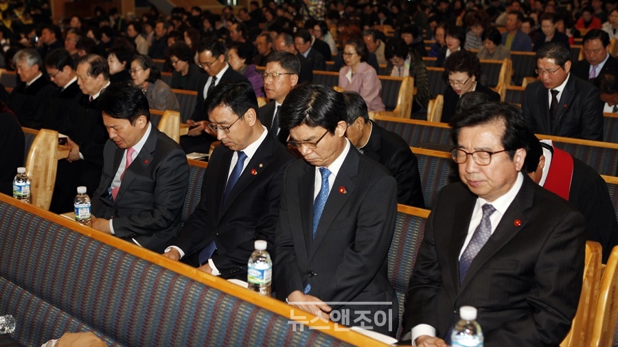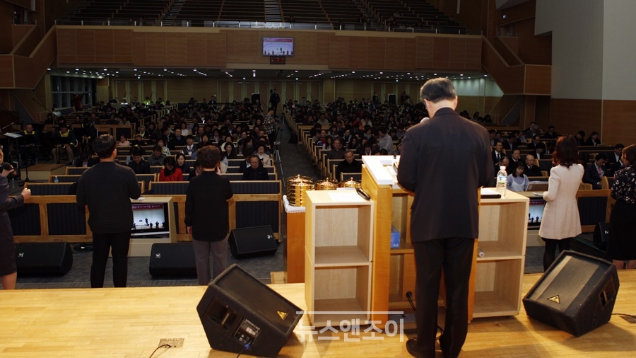 이어지는 성찬식에서도 회개를 촉구하는 메시지가 계속됐다. 집례를 맡은 류정길 목사는 떡과 잔을 나눈 뒤 소리 높여 기도했다.
