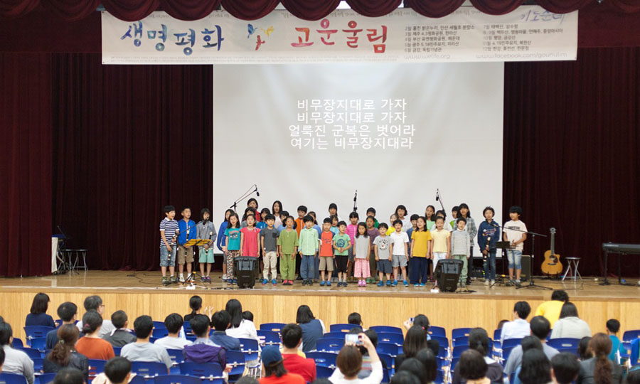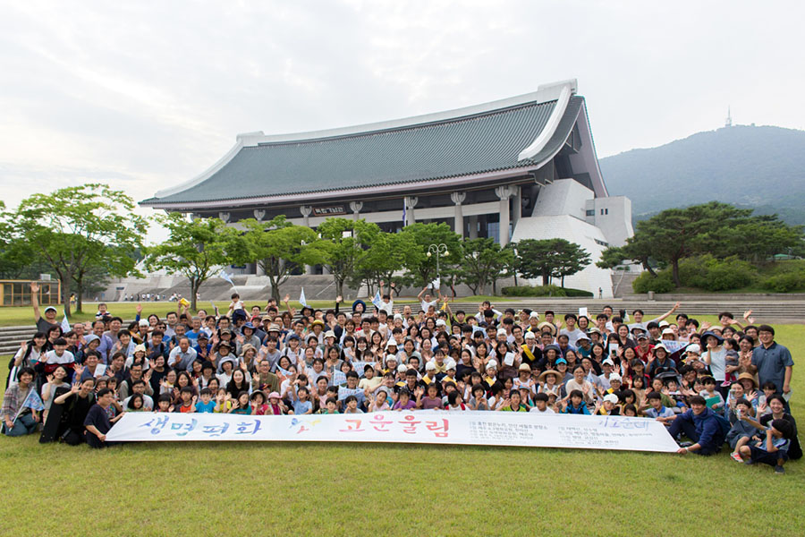 6월 17일 오전, 천안 독립기념관 컨벤션홀, 산뜻어린이교회와 어깨동무어린이교회가 부르는 '비무장지대'와 함께 생명 평화 고운 울림 잔치가 시작되었다. 홍성 홍동마을, 꼼지락적정기술협동조합, 우금티 전적지, 통전교육연구소 등 충청 지역 곳곳에서 개인 기도 순례 일정을 보내고 모인 길벗 250여 명의 환호와 탄성은 밝은누리움터 학생들의 웃다리 사물놀이 공연으로 절정에 달했다. 몇 개월 전만 하더라도 전운이 감돌던 이 땅에 평화와 화해의 분위기가 형성되고, 그것이 기존 동북아 질서까지 흔들어 새판을 짜는 날이 올 줄 그 누가 알았으랴.