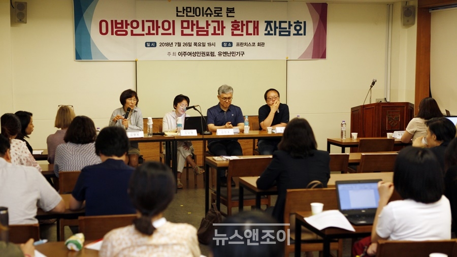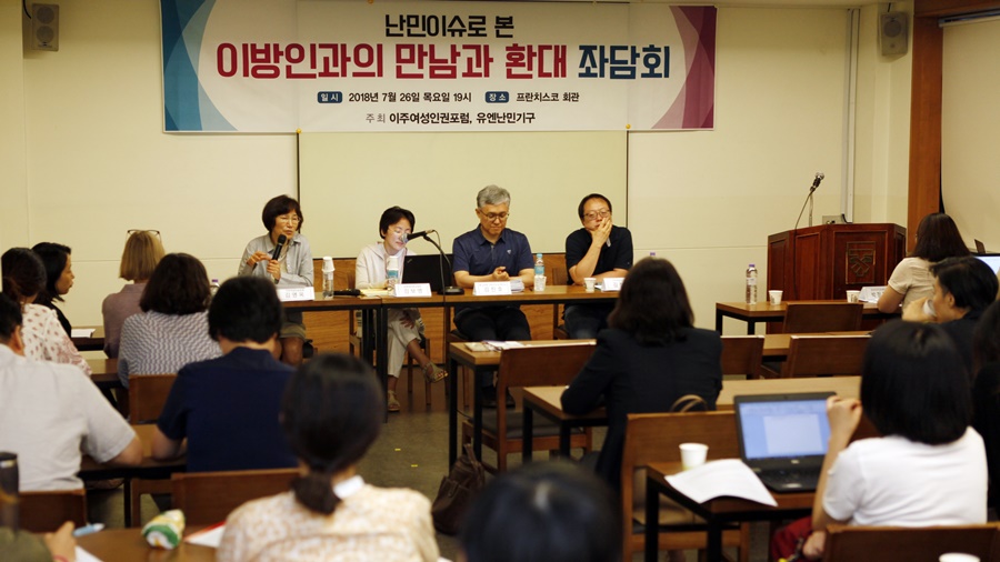 이주여성인권포럼과 유엔난민기구는 7월 26일 '난민 이슈로 본 이방인과의 만남과 환대'를 주제로 좌담회를 열었다. 패널로 참석한 전문가들은 시민들이 왜 그렇게 난민 앞에서 공포와 불안을 느끼는지 논의했다. 이들은 사람들이 드러내는 혐오와 적의 이면에 배타성을 부추기는 요인이 있다고 했다. 이번 일을 계기로 성찰과 반성을 할 필요가 있다고 입을 모았다.