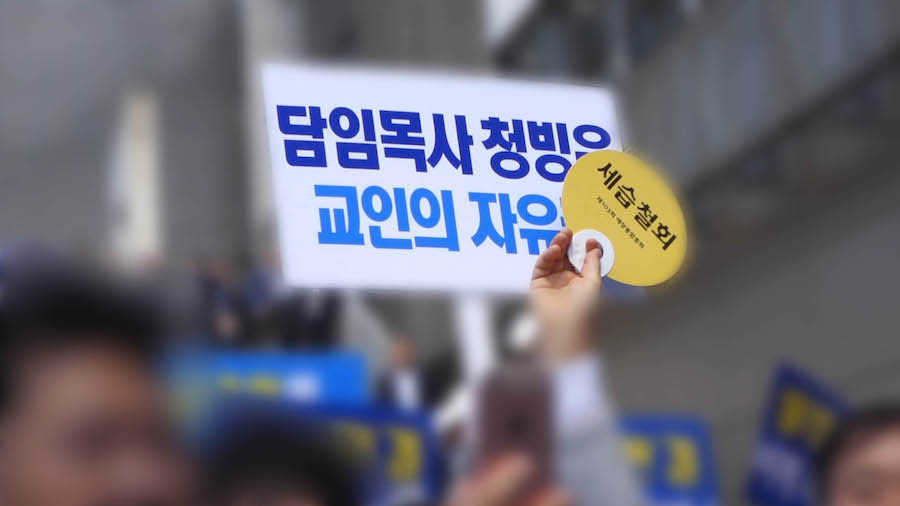 명성교회 교인들은 교회세습반대운동연대 예배를 약 30분간 훼방한 뒤, 바로 옆에서 통성기도를 하고 찬양을 불렀다. 격렬했던 세습 찬반 시위 현장을 영상에 담았다.