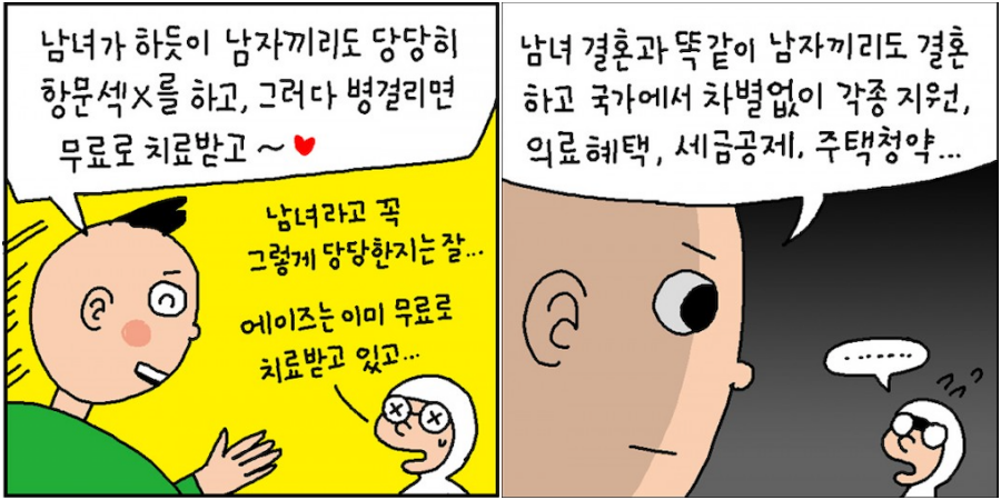 NAP가 국무회의를 통과한 8월 7일에는 이에 관한 웹툰도 올라왔다. 대한민국 정부 로고가 얼굴에 그려진 인물이 '성소수자'를 끌어안고 활짝 웃는 그림에 "NAP를 시행하여 아이든, 동물이든, 시체든 상관없이 성관계할 수 있는 인권의 나라 반드시 만들겠습니다"라고 쓰여 있다. NAP가 시행되면 소아 성애, 수간 등의 법제화가 진행된다는 반동성애 진영의 극단적 주장을 그대로 답습한 내용이다.