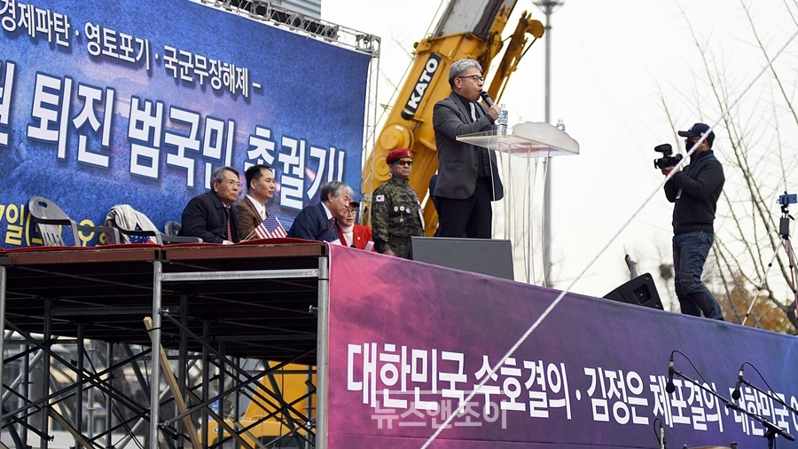 극우 기독교와 태극기 부대가 손잡고 개최한 '문재인 대통령 퇴진 총궐기'가 11월 17일 서울 광화문 일대에서 열렸다. 이번 집회는 전광훈 목사(사랑제일교회)가 주도했다. 1부 행사 사회를 본 전 목사는 "잘나가는 대한민국을 문재인 강도가 나타나서 나라를 침몰시키고, 고려 연방제로 가려고 하는데 받아들일 수 없다. 이 사건을 저지하기 위해 모였다"고 말했다.