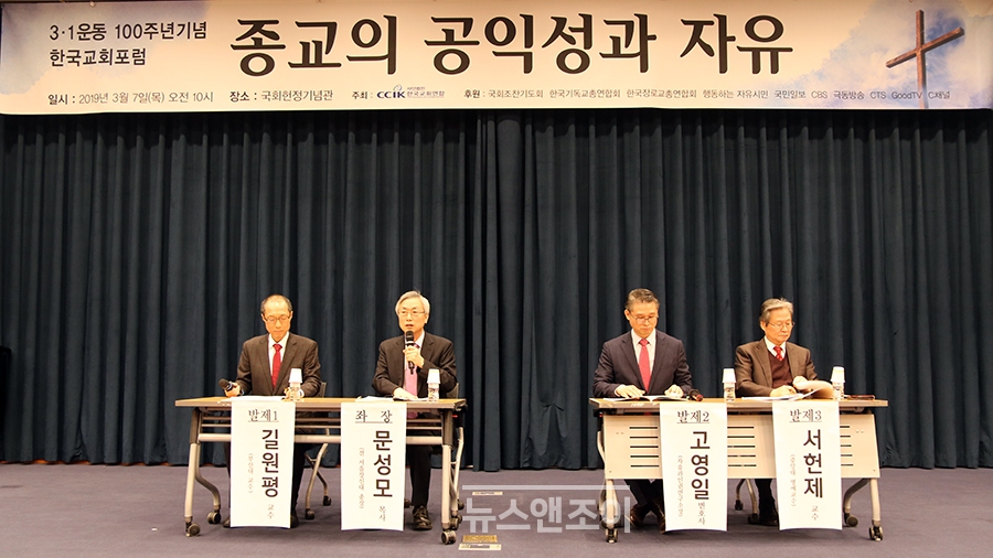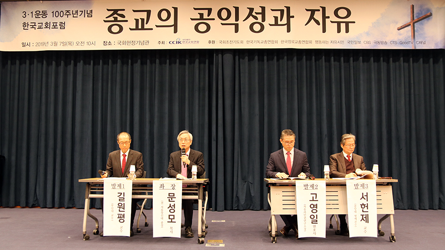 이런 분위기 속에서 한국교회연합(한교연·권태진 대표회장)은 3월 7일, 3·1 운동 100주년 기념 '종교의 공익성과 자유'라는 주제로 포럼을 열었다. 이언주·이혜훈 의원(바른미래당), 조배숙 의원(민주평화당) 등 동성애 반대에 앞장서는 의원과 함께 국회 헌정기념관에서 열렸다.