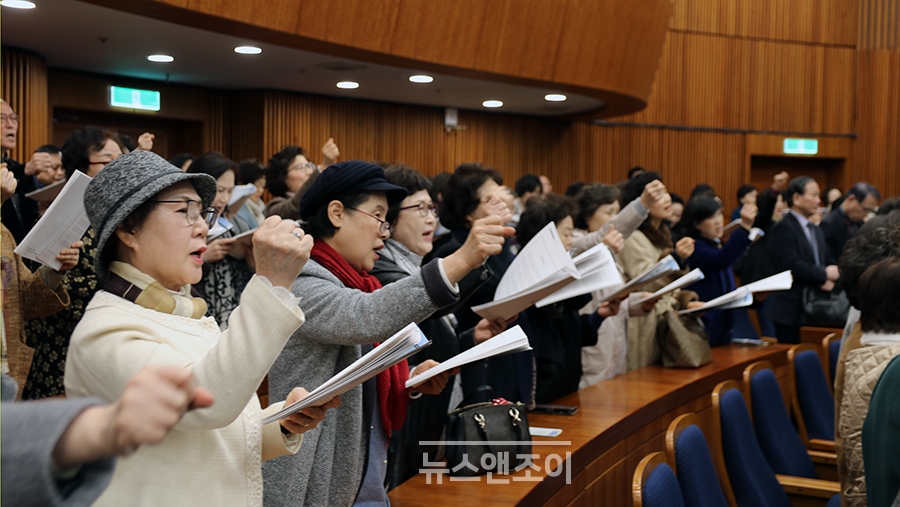 | 결의문 한국 기독교는 100년 전 우리 조국의 독립과 자유, 평화를 위하여 만세의 기치를 높이 들었었다. 그러한 숭고한 신앙 결단으로 조국이 해방되었으며, 오늘 세계 열강과 어깨를 나란히하는 대한민국이 건립된 것이다. 이는 135년 전에 복음을 받아들여 기독교 정신에 입각해 나라 사랑과 헌신과 봉사, 섬김을 실천해 온 애국적 발로의 결과물이다. 이 땅에 기독교가 들어와 나라의 존립과 민족의 변화와 발전에 기여한 것은 일일이 표현하기 어려울 정도다. 한마디로 한국의 근 · 현대사에서 기독교의 역할과 기여를 빼면, 우리 역사를 말할 수 없다. 기독교 신앙과 교육에 의해 배출된 수많은 인재와 지도자들이 우리 사회 각계 각층에서 조국의 발전과 미래를 위하여 맡은 소임에 충실하고 있으며, 건강한 대한민국을 이끄는 견인차 역할을 감당하고 있음은 주지의 사실이다. 그러나 최근 우리 사회에서는 이러한 기독교 정신을 폄훼하고 말살하려는 시도들이 계속되고 있다. 기독교 건학 이념으로 세운 학교들에 부당한 압력과 간섭을 일삼는 것은 물론, 교회의 고유 권한인 성직자를 세우는 일에까지 사법부가 간섭하는 것은 기독교의 근간을 흔드는 초헌법적 반종교적 월권이 아닐 수 없다. 이에 따라 우라 우리는 3·1 운동 100주년을 맞는 역사적 시점에서 오늘의 대한민국의 건국과 발전에 헌신, 기여한 한국 기독교에 대한 국가기관과 사법부의 부당한 간섭과 폄훼 행위를 즉각 중단할 것을 촉구하며 다음과 같이 결의한다. 하나, 국가인권위원회와 정부는 인권이라는 미명하에, 우리 사회를 온통 음란에 물들이고, 건강한 도덕과 윤리의 가치를 붕괴시키는 '동성애'가 포함된 '차별금지법' 제정과 각 지자체별 '인권 조례'와 교육청별 '학생인권조례'를 즉각 폐지하라. 하나, 국가인권위원회는 정치권력화하는 동성애를 옹호하는 독불장군식 편향성에서 깨어나 기독교 건학 이념에 의하여 세워진 기독교 사학에 대한 초법적인 간섭과 월권을 즉각 중단하라. 하나, 국가 사법부는 헌법에 보장된 '정교분리 원칙'에서 이탈한 위임목사 결의 무효 등과 같은 편향적 판결이 한국교회 전체의 근간을 흔들고 국민 화합을 해치는 결과를 초래한다는 것을 명심하고 교회의 독립적 고유 권한인 성직자 임명 등 교회 내부의 제문제에 대한 부당한 법률적 침해를 시정하고 종교의 공익과 자유를 즉각 보장하라. 2019년 3월 7일 |