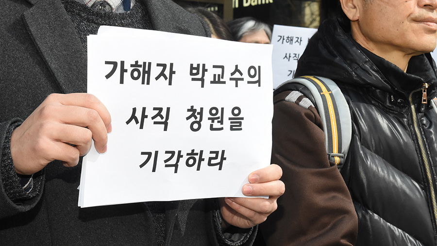 한신대 신대원 학생회 장동원 사회부장은 박 교수는 사직이 아니라 파면해야 한다고 말했다. 그는 "성폭력 가해자 박 교수가 자신의 생사 여탈권을 스스로 결정하는 게 아니라 법과 절차에 의해 합당한 징계를 받아야 한다. 전북노회는 재판국을 구성해 정의롭게 판결하라. 우리의 신학생들이 불의에 의해 찢기지 않게 도와 달라"고 호소했다.