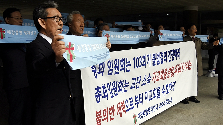 [뉴스앤조이-이용필 기자] 명성교회 불법 세습을 반대하는 이들을 규탄해 온 예장통합정체성과교회수호연대(예정연·최경구 대표회장)가 이번에는 총회 임원회를 걸고넘어졌다. 대한예수교장로회 통합(예장통합·림형석 총회장) 총회 임원회가 명성교회에 유리한 유권해석을 내린 헌법위원회 보고를 보류하자 반발한 것이다.