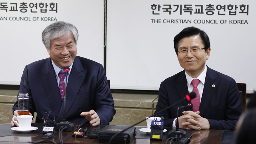 한국기독교총연합회 대표회장 전광훈 목사는 자유한국당 황교안 대표에게, 이승만 대통령과 박정희 대통령을 잇는 세 번째 지도자가 되어 줬으면 좋겠다는 말을 했습니다. 2020년 4월 15일에 있는 총선에서 자유한국당이 200석 이상 차지하지 못하면 나라가 해체될지도 모른다고 하는 위기감을 갖고 있다고 말하기도 했습니다.