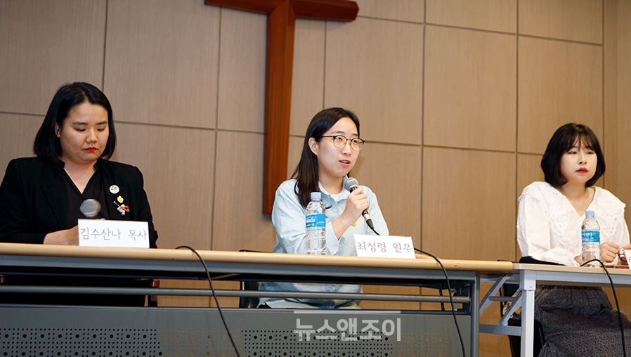 기청 설문 결과를 소개한 옥바라지선교센터 하민지 운영위원은, 성폭력이 발생하지 않았고 담임목사에게 성범죄 전과가 없다고 해도 교회가 무조건 안전한 공간이라고 볼 수 없다고 말했다. 그는 응답자들이 교회에서 들은 성희롱 발언들을 소개했다.