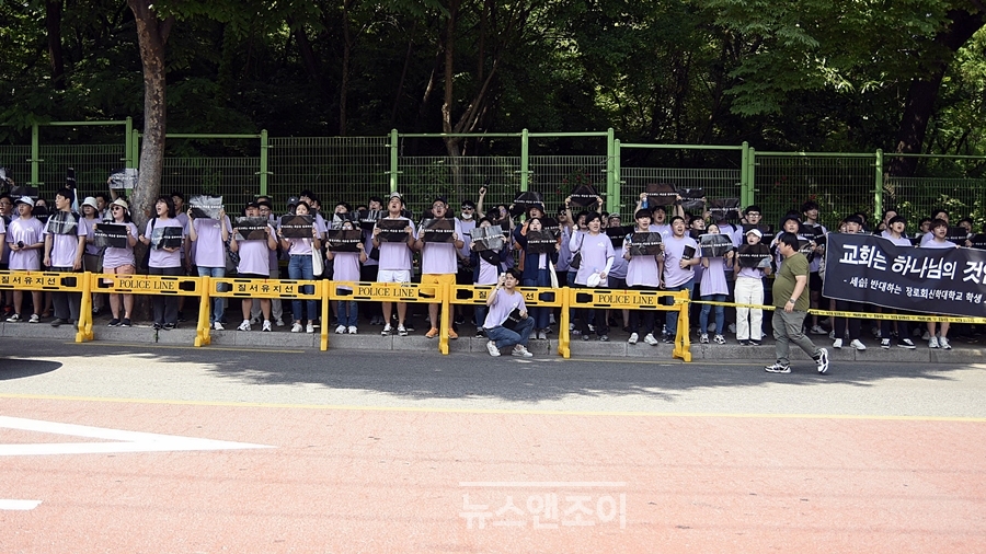 성 교수는 "학생들이 이렇게까지 나서는데 선생들이 함께하지 않을 수 있겠나. 우리의 선한 의지가 잘 전달됐으면 한다. 특정 교회를 미워하거나 싫어해서 이러는 게 아니다. 우리가 하나님께 한 약속을 한 지키자는 것이다. 총회에서 정한 (세습금지)법이 있으니, 함께 지켜야 한다"고 말했다.
