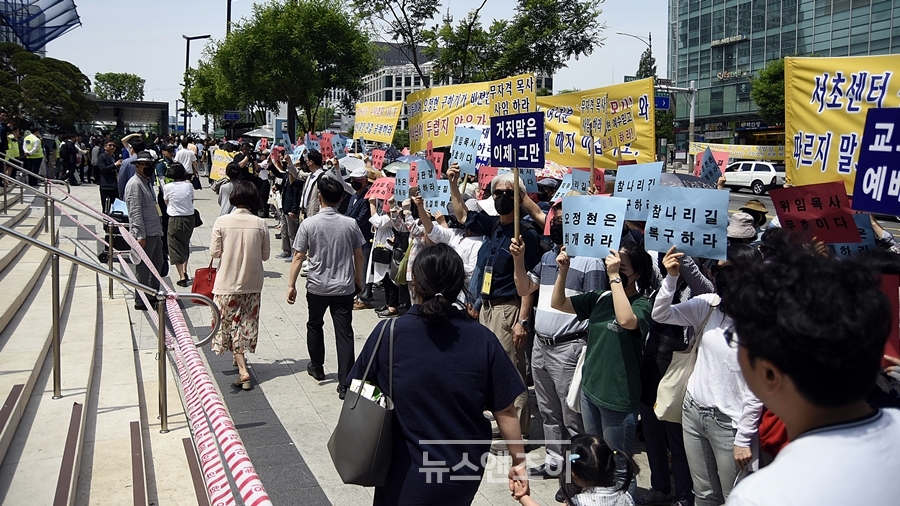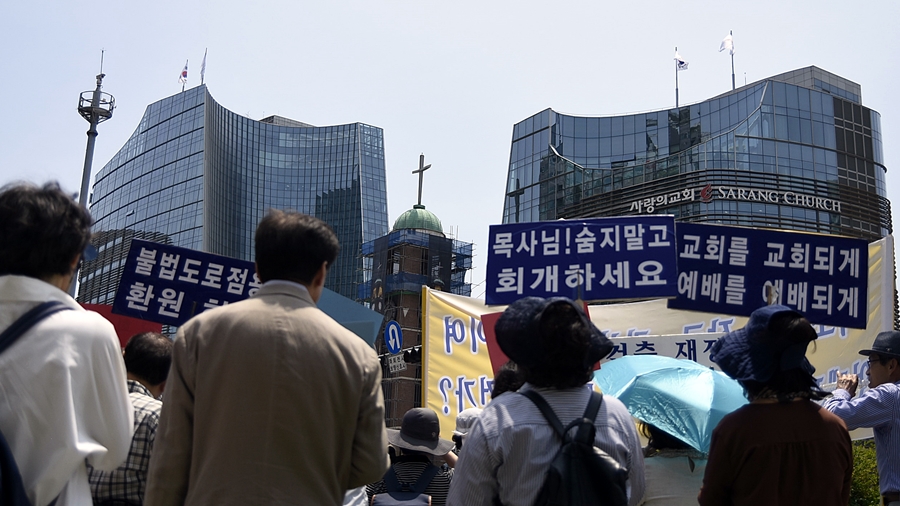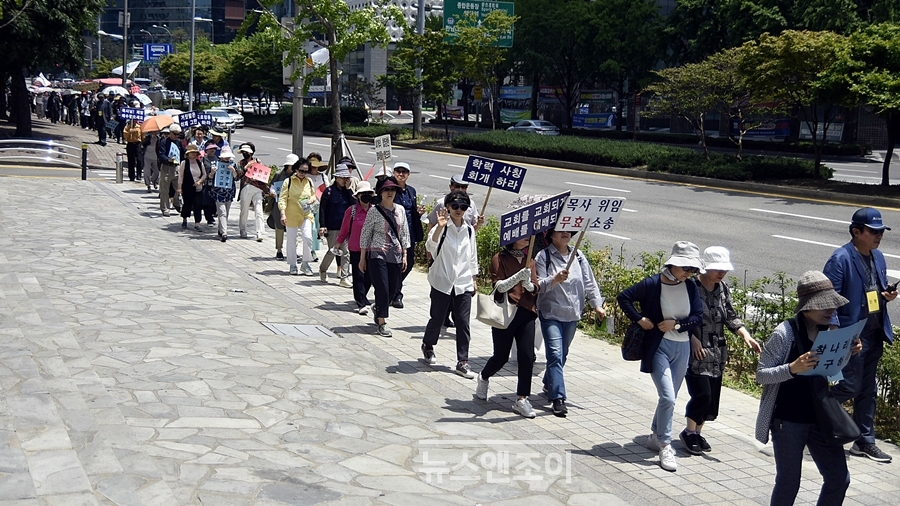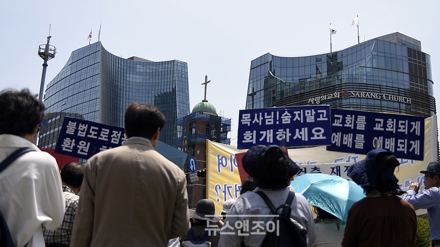 강남 예배당서 서초까지 행진 "6월 1일 헌당 감사 예배는 '꼼수'"