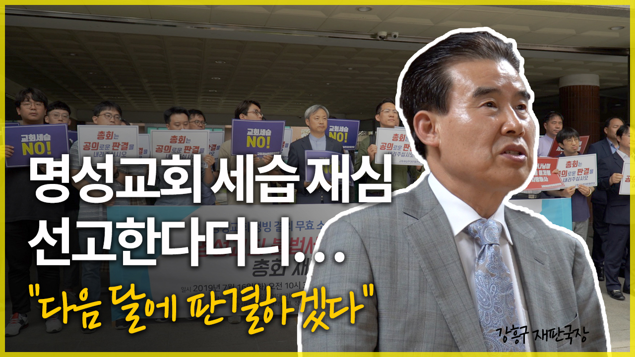 회의 시작 후 9시간여 지난 저녁, 재판국장은 "논의가 더 필요하다. 8월에 판결하겠다"며 선고를 연기했다. 세습 반대 단체 회원과 신학생들은 재판을 마치고 퇴장하는 재판국원들을 막아서며 반발했다. 말도 많고 탈도 많았던 재심 재판 현장을 영상에 담았다.