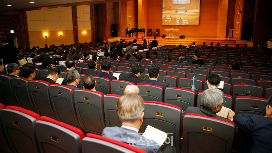 대한예수교장로회 통합(예장통합·림형석 총회장) 서울동남노회수습전권위원회(수습전권위·채영남 위원장)는 7월 25일 한국교회100주년기념관 대강당에서 수습 임원회 선출을 위한 임시노회를 열었다. 명성교회 세습을 반대하는 목사들이 전날 불참을 선언해 개회 정족수(재적의 ½)가 미달할 거라는 예상이 있었지만, 재적 382명 중 노회원 209명이 참석해 임시노회가 정상 개회했다.