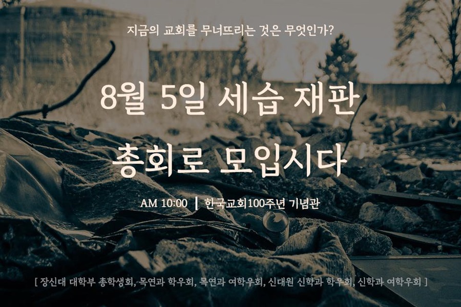 총회 재판국이 8월 5일 명성교회 손을 들어 준다면 목회 세습의 파고를 더는 막기 어렵다고 했다. 신학생들은 "절박한 상황에서 기도하고자 한다. 함께 모여 기도하고 역사적인 재판을 지켜보려 한다. 8월 5일 오전 10시 종로5가 총회 본부로 모여 달라"고 했다.