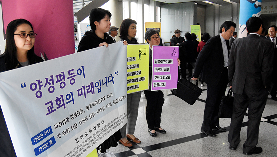 감리회 내부에는 목회자 성범죄 문제를 해결하기 위한 움직임이 오래전부터 있었다. 이번에 장개위가 성폭력 관련 법안을 입법의회에 상정하는 데는 감리회 여성 단체 11개가 모인 감리교여성연대(여성연대) 활약이 컸다.