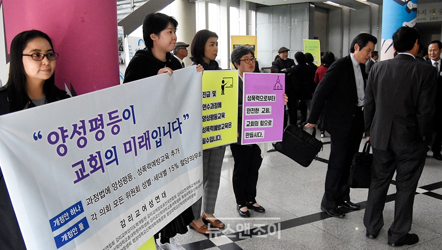 2017년은 감리회 소속 목사였던 문대식 씨 성폭력 사건이 터졌을 때다. 어느 때보다 목회자 성범죄 문제가 교단 안에 큰 이슈로 떠올랐지만, 여성연대가 발의한 법안은 장개위 개정안에 반영되지 못하고 모두 부결됐다. 여성연대는 그해 10월 입법의회에서 이 안건들을 현장 발의했지만, 장개위는 논의하기에 시간이 촉박하다는 이유로 반려했다.