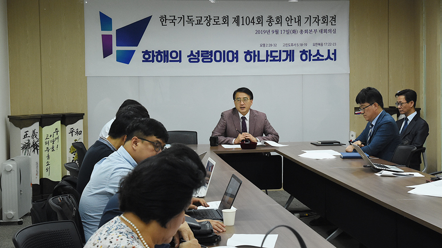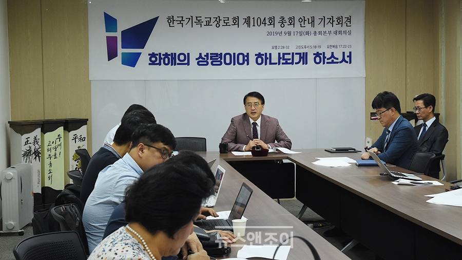 [뉴스앤조이-이은혜 기자] 한국기독교장로회(기장·김충섭 총회장) 104회 총회가 9월 23일부터 4일간 전라북도 변산반도 대명리조트에서 열린다. 기장은 '화해의 성령이여, 하나 되게 하소서'라는 주제로 열리는 총회를 앞두고 9월 17일 종로 총회 본부에서 기자회견을 열었다.