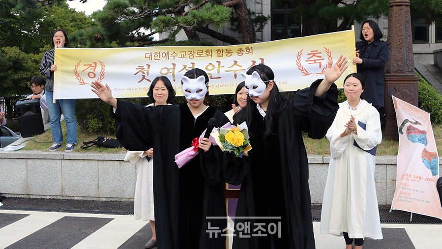 안수를 받은 두 사람이 공동 축도했다. 이들은 "예장합동 총회 앞에서 '성차별이라는 돌 위에는 돌 하나조차 남지 않으리라' 선언하는 예수 그리스도의 은혜와 어떠한 위력이나 차별 없이 모두 하나임을 선포하시는 하나님의 사랑과, 예장합동 총회의 차별과 목회의 유리 천장을 허무실 성령님의 사귐이 함께하기를 빈다"고 했다.