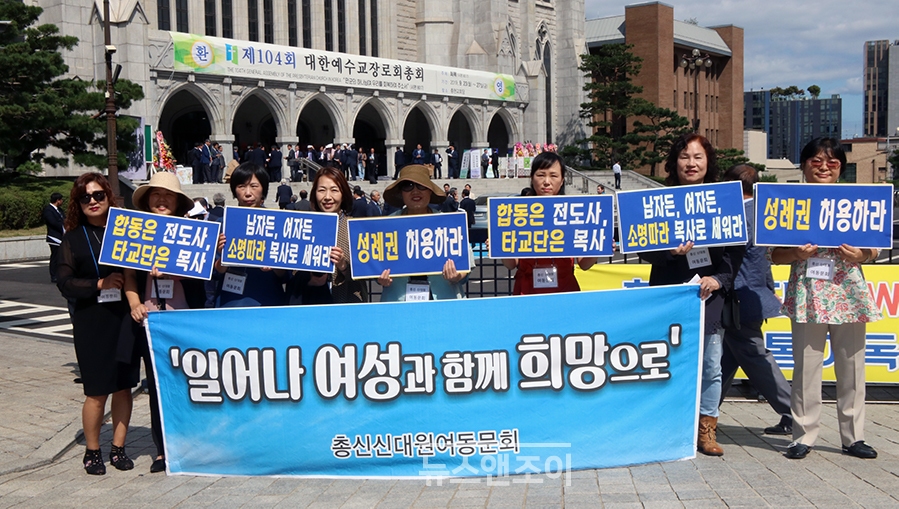 매년 총회 앞에서 여성 안수 허용을 촉구하는 총신대학교 여동문회의 피켓 시위도 이어졌다. 여동문회 회원 10여 명은 충현교회 입구에서 '합동은 전도사, 타 교단은 목사', '남자든 여자든 소명 따라 목사로 세워라', '성례권 허용하라' 등의 피켓을 들고 교단에 전향적 변화를 촉구했다.