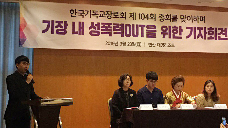 기장 구성원들, 성폭력 근절 위한 기자회견 열고 총대들에게 호소