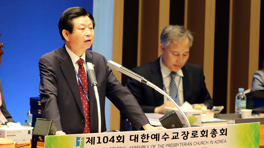 회무 첫째 날인 9월 23일 저녁, 김종준 총회장은 총대들이 각 노회를 대표해 모인 이들이니만큼 책임 있는 모습을 보여 달라고 말했다. 특정인에 의해 여론 몰이식 결의를 하지 말고, 찬성 3명과 반대 3명 토론을 통해 심도 있게 결정하자고 했다. 그러기 위해서는 총대들의 적극적인 참여가 필수라며 "104회 총회부터는 한 번이라도 빠진 사람은 105회기 총대권을 제한하도록 하자"고 제안했다. 그러자 총대들은 우렁차게 "아니오"라고 답했다.