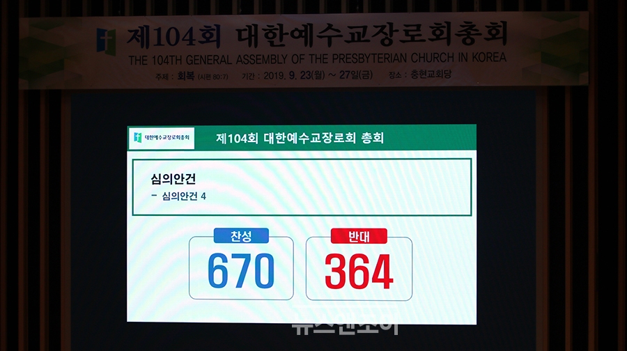 사회를 맡은 소강석 부총회장은 전자 투표를 시행했다. 재석한 1048명 중 670명이 운영이사회 폐지에 찬성했다.(계속)