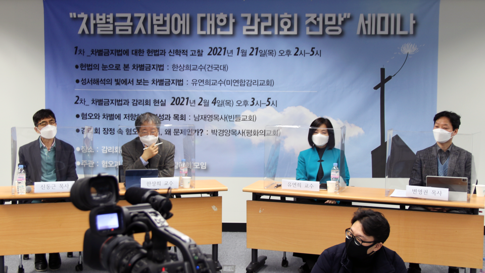 [뉴스앤조이-최승현 기자] 기독교대한감리회(감리회·이철 감독회장) 소속 목회자·교인들로 구성된 '차별과혐오에반대하는감리회모임'이 '차별금지법에 대한 헌법과 신학적 고찰'을 주제로 1월 21일 서울 광화문 감리회본부 회의실에서 세미나를 열었다. 감리회 목회자와 교인들의 인식을 개선하고, 배제·처벌 일변도인 교단의 기조에 맞서 차별금지법이 왜 모두에게 필요한지 꼼꼼히 따져 봤다. 세미나는 코로나19 상황에 따라 화상으로 진행됐다. 약 30명이 참석했다.