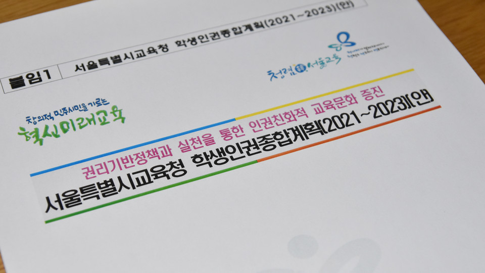 서울시교육청이 지난해 12월 발표한 '학생 종합 인권 계획'은 서울시 학생 인권조례에 명시된 것이다. 2017년부터 지난해까지 1기 계획이 마무리됐고, 올해부터 2023년까지를 기한으로 2기 계획을 내놨다. 여기에는 '어떻게 하면 서울시 관내 학교를 모두에게 안전한 학교로 만들 수 있을지', '어떤 교육을 통해 학생 개개인을 교육 주체로 세우고 민주 시민으로서 인권 의식 및 역량을 강화할 수 있을지' 등 교육청의 방향성이 담겨 있다.