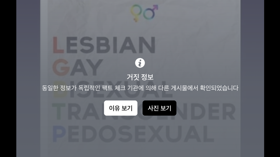 페이스북은 성소수자 인권 운동에 소아 성애도 포함한다는 주장을 허위·왜곡 정보로 판단하고 있다. 페이스북은 LGBTQP의 P가 '소아 성애'를 뜻한다는 사진을 게시하면 '거짓 정보'라는 딱지가 붙는다. "동일한 정보가 독립적인 팩트체크 기관에 의해 다른 게시물에서 확인됐다"는 설명과 함께.