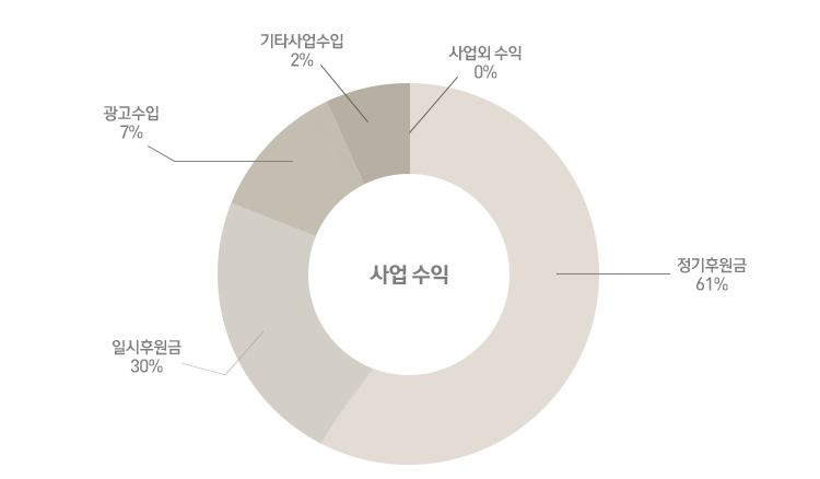 | 정기후원금 | 개인, 단체, 기업등의 후원금 | 103,171,900 | 61% |