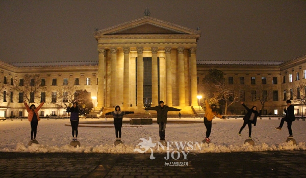 저녁에 '8번가교회'를 방문하고 나니 밤이 깊어졌습니다. 몸은 피곤한데 뭔가 아쉽고 허전합니다. 이틀 후 아침에는 한국으로 돌아가는 비행기를 타야 하기 때문일 것입니다. 남은 시간을 아껴서 여행을 즐겨야 합니다. 우리는 추위를 뚫고 '록키 스텝스(Rocky Steps)'라고 불리는 필라델피아박물관을 갔습니다.