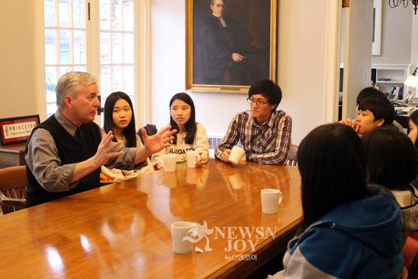 다음 날 아침, 뉴저지에 있는 프린스턴대학교를 둘러보고 바로 옆에 있는 프린스턴신학교도 방문했습니다. 이 학교 재단 이사이기도 한 김진수 장로님이 안내해 주셨고, 크레이그 반스(M. Craig Barnes) 총장님이 자기 방으로 우리를 초대했습니다.